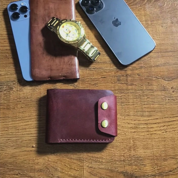 Single Snap Full Option Leather Wallet is the perfect balance of classic craftsmanship and modern functionality. It is expertly hand-stitched by premium leather. This wallet is designed to keep your essentials secure and organized. It features 6 dedicated card pockets for your most-used cards, 3 cleverly hidden pockets for extra cards, receipts, or small valuables, and a spacious cash pocket to keep your bills crisp and accessible. The sturdy double snap closure ensures everything stays neatly in place.